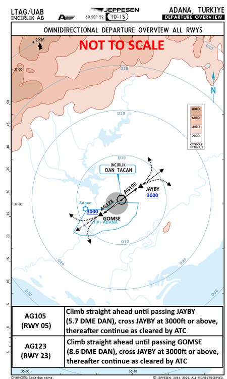 Pattern Re-Entry. Re-entry will be from the south for both runways to avoid overflying Adana City. Straight-ins will climb and maintain 2,000 ft. MSL for re-entry